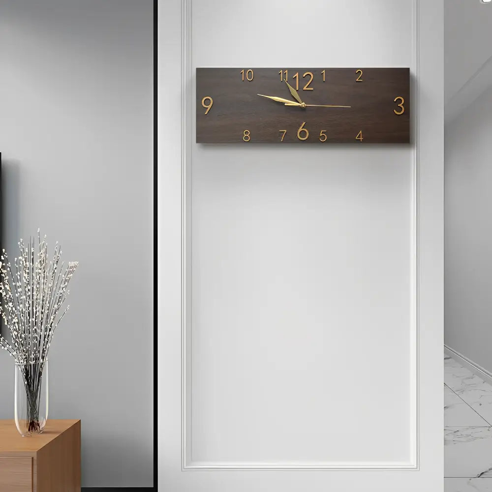 Rechteckige Wanduhr in Holzimitat: Europäische Eleganz für Ihr Wohnzimmer